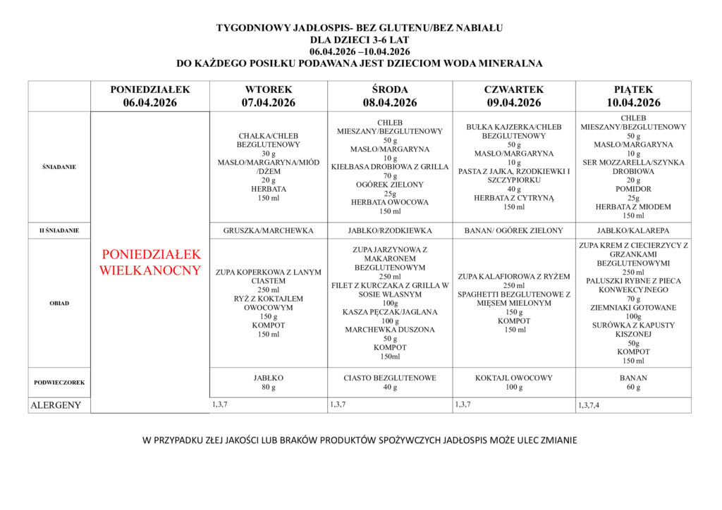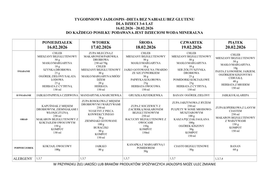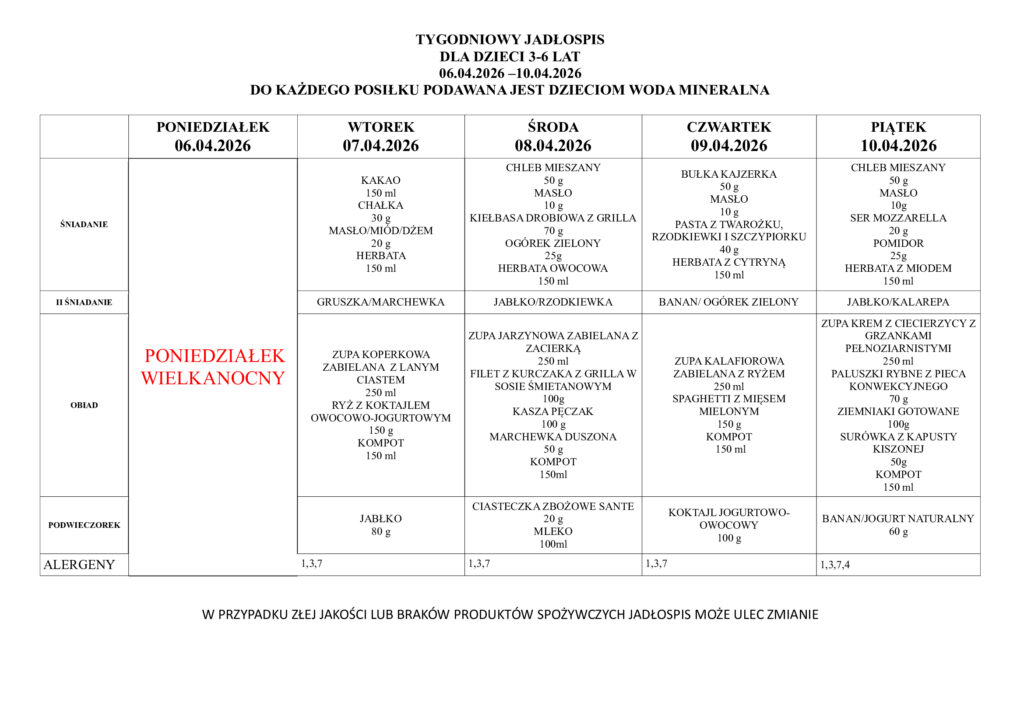 • Tygodniowe menu